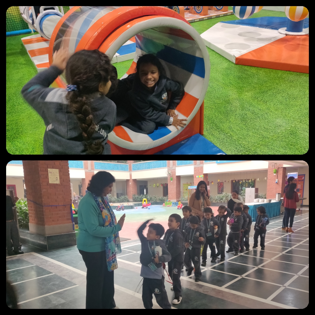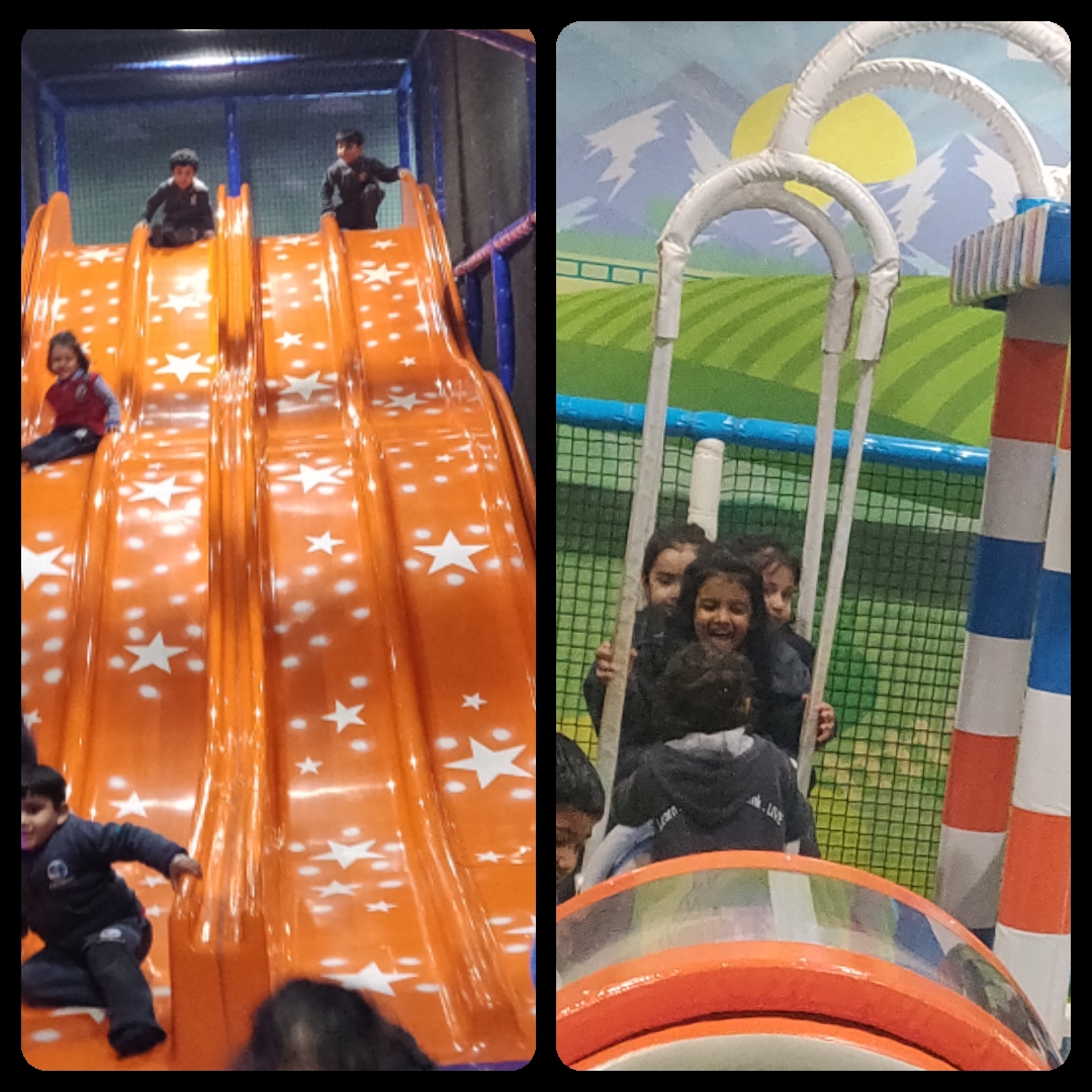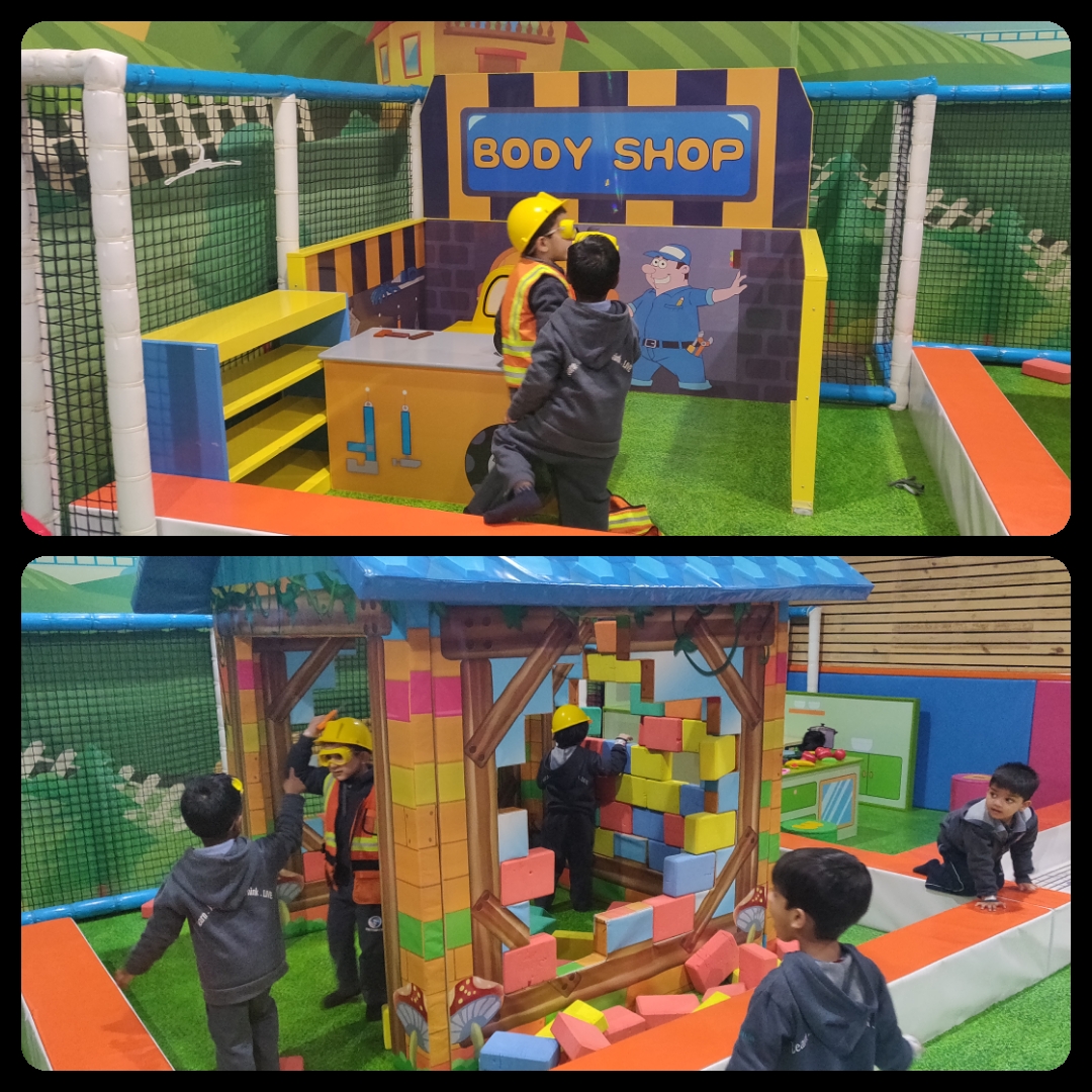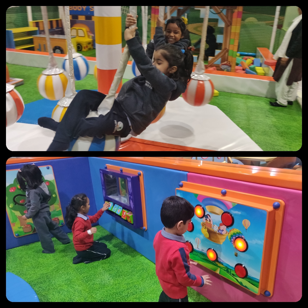 We could hear squeals of laughter as the children were rolling, slipping, sliding, swinging, crawling and jumping on an innovatively designed trampoline and slides. We could see children being creative and getting into their roles in the pretend kitchen and construction areas. Nursery graders’ triumph and jubilation was a sight to behold as they engaged with huge ball canons….aiming….firing…. and watching the balls reach targets. An interactive floor piano got our little ones hooked on to the different rhythms and tunes. This field trip facilitated multiple friendships, bonding and collaboration as kids helped, cared and encouraged each other to involve in different game stations. Truly Playbox is a wonderful place that allows for playful learning while enhancing children’s motor skills and develops their cognitive thinking.