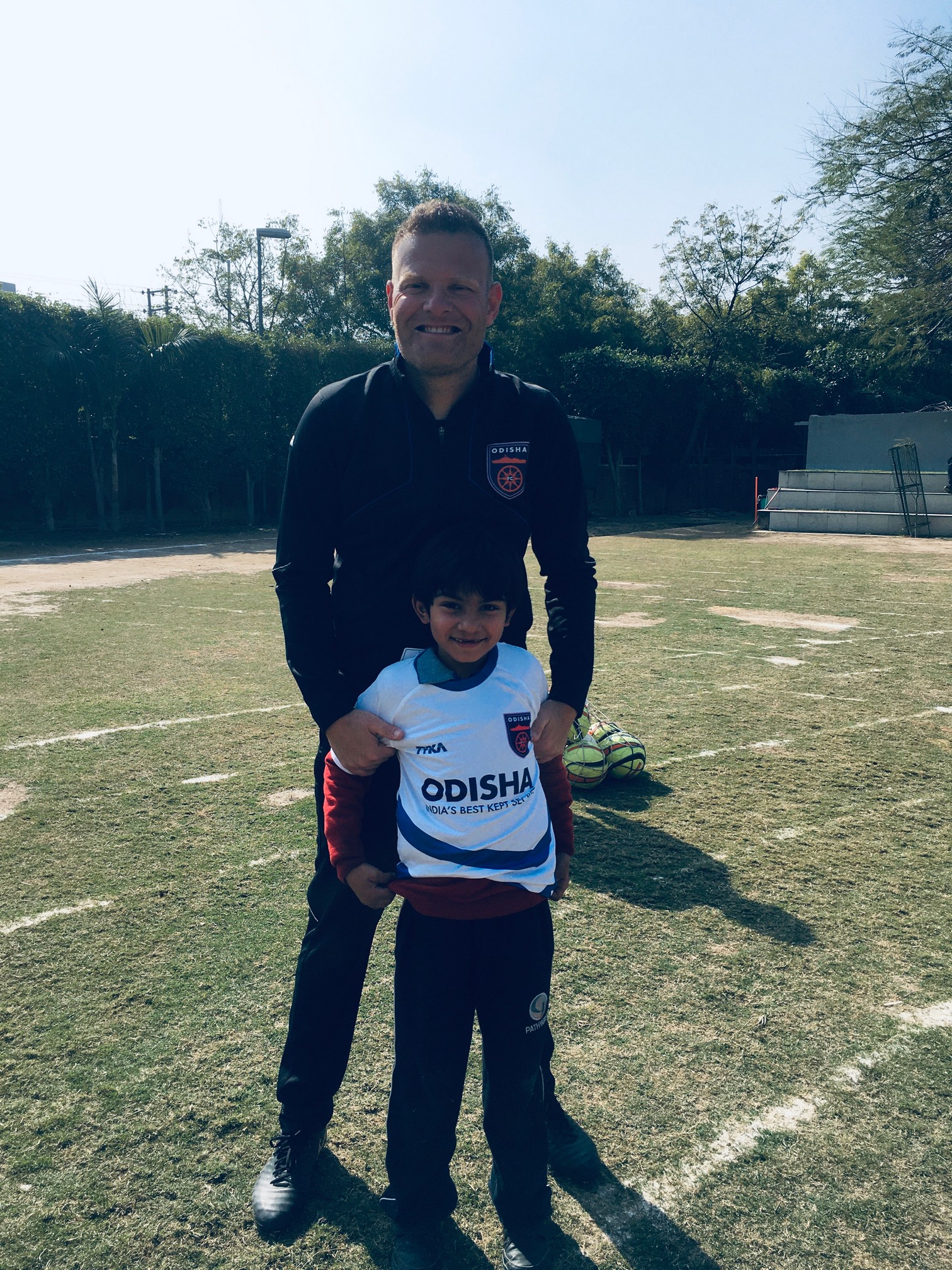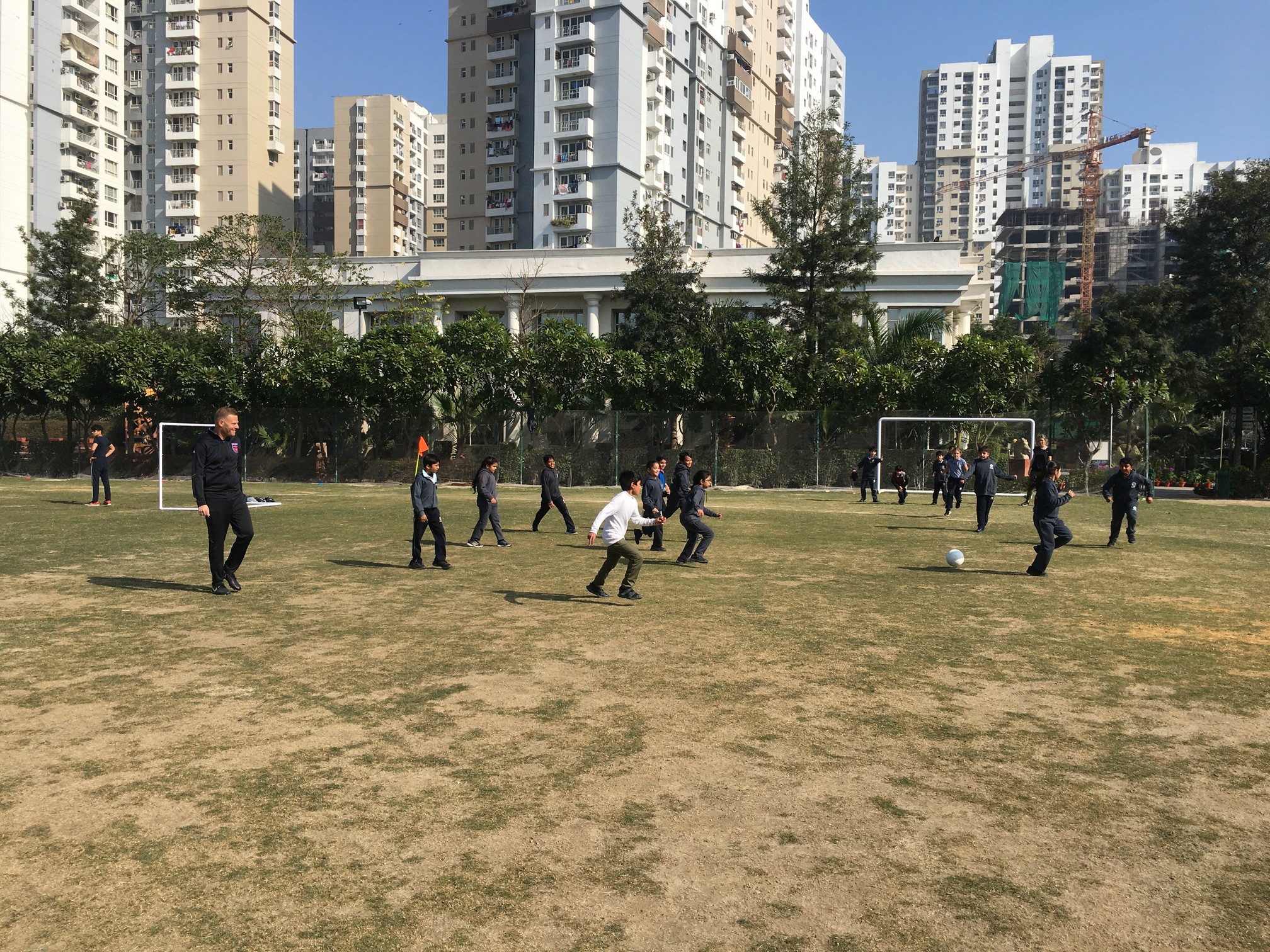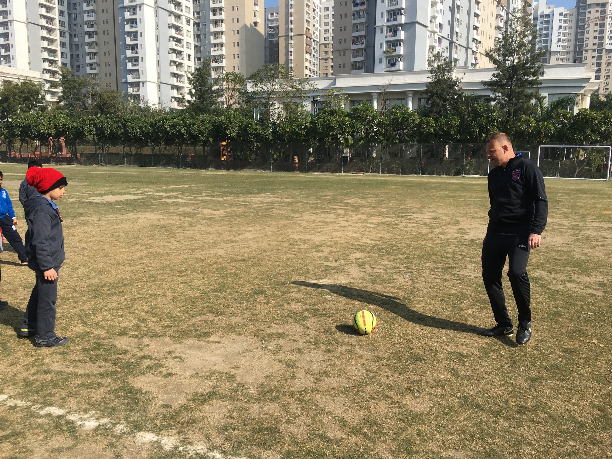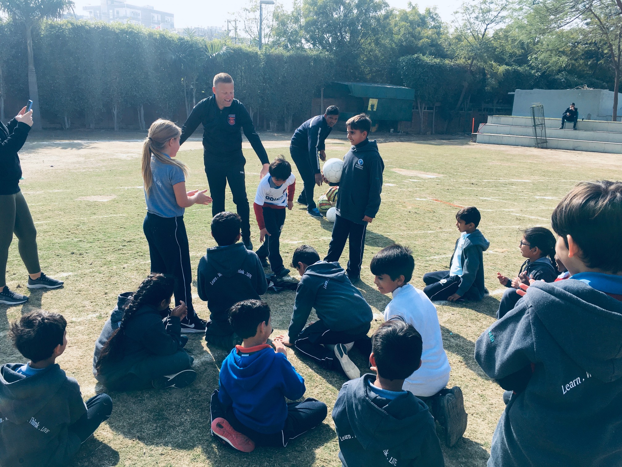 He taught the students different techniques to handle the ball. They also played a friendly soccer match.